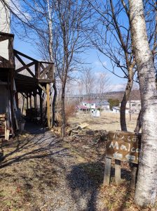 坂を下るともう1つの看板を見つけました。建物の裏から入るようです。