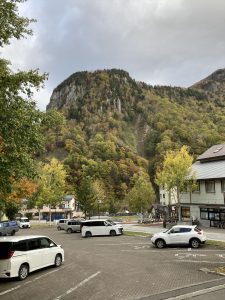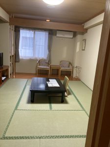 近くに数件食事ができるところはありますが、閑散期に営業しているかは?です。コンビニはあります。チェックインするために並ぶと、フロントの人も前のお客さんも外国人で英語で応対しています。結構細かく設備や温泉の時間など説明していました。おぅ・・・久しぶりに「I’d like to check in」と言うときが来たか!と思いきや、日本人のフロントさんが来て対応してくれました。どうして日本人と解るのでしょう? ハワイでは良く韓国人に間違えられていました^^;